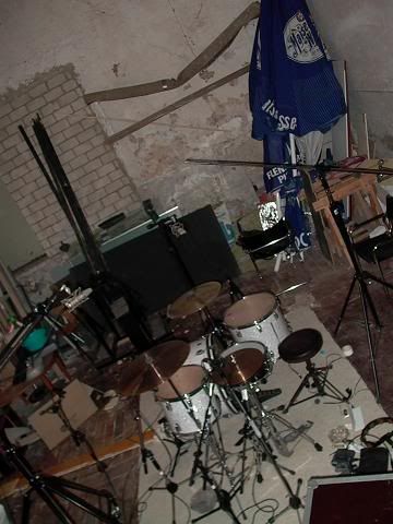 Mittwoch, 20. Juli: Schlagzeug aufnehmen. Hauke und wir entscheiden uns lieber der Gerümpelhalle des Studios aufzunehmen, da das geil klingt und auch auf Fotos besser aussieht. Welch weise Entscheidung. 5 Stunden später sind die Schlagzeugspuren fertig und ich mache mich mit übergroßen Enthusiasmus an die Gitarren. Der verfliegt sehr schnell. Tausend Takes später ist der Gitarrensound immer noch kacke und ich genervt wie ein Schmied. Jetzt rächt es sich, dass vor Jahren mir einen Marshall-Verstärker wider besseren Wissen aufschwatzen lassen habe. Nachts um 2 noch Gerris Gitarre geholt und Rolands Verstärker aufgebaut und total verdreht. Das klingt geil, aber der erste Tag ist vorbei und ein Lied von vieren ist halb fertig. Ich kriege ne Krise.